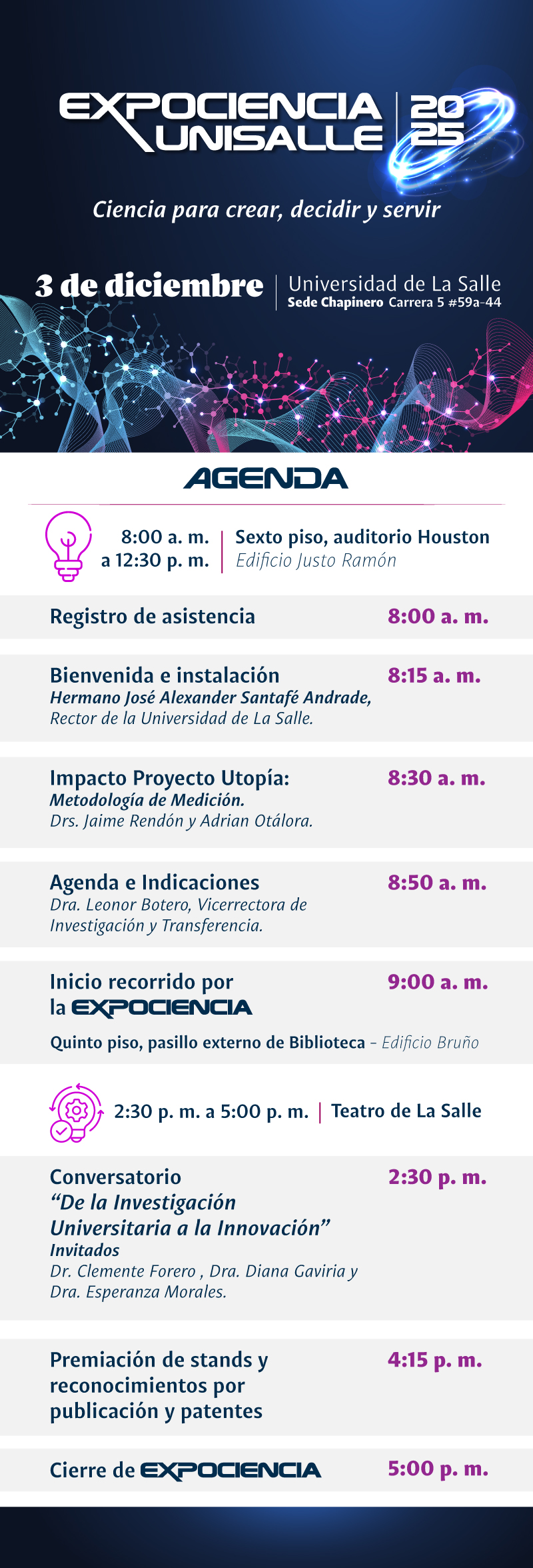 Expociencia Unisalle 2025 es una invitación a descubrir cómo la ciencia se convierte en una herramienta para crear, decidir y servir, fortaleciendo la misión educativa y social de la Universidad de La Salle.